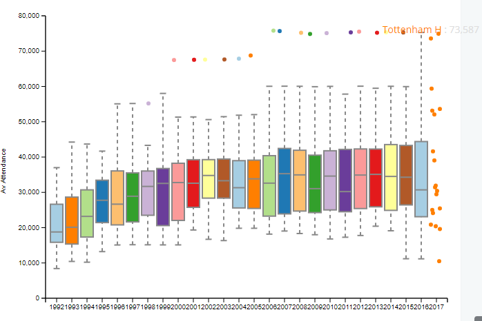 Bournemouth’s small ground has held the average attendances down a bit since their promotion but the restoration of Newcastle and, more significantly, the move of Spurs to Wembley suggests records could be set this season